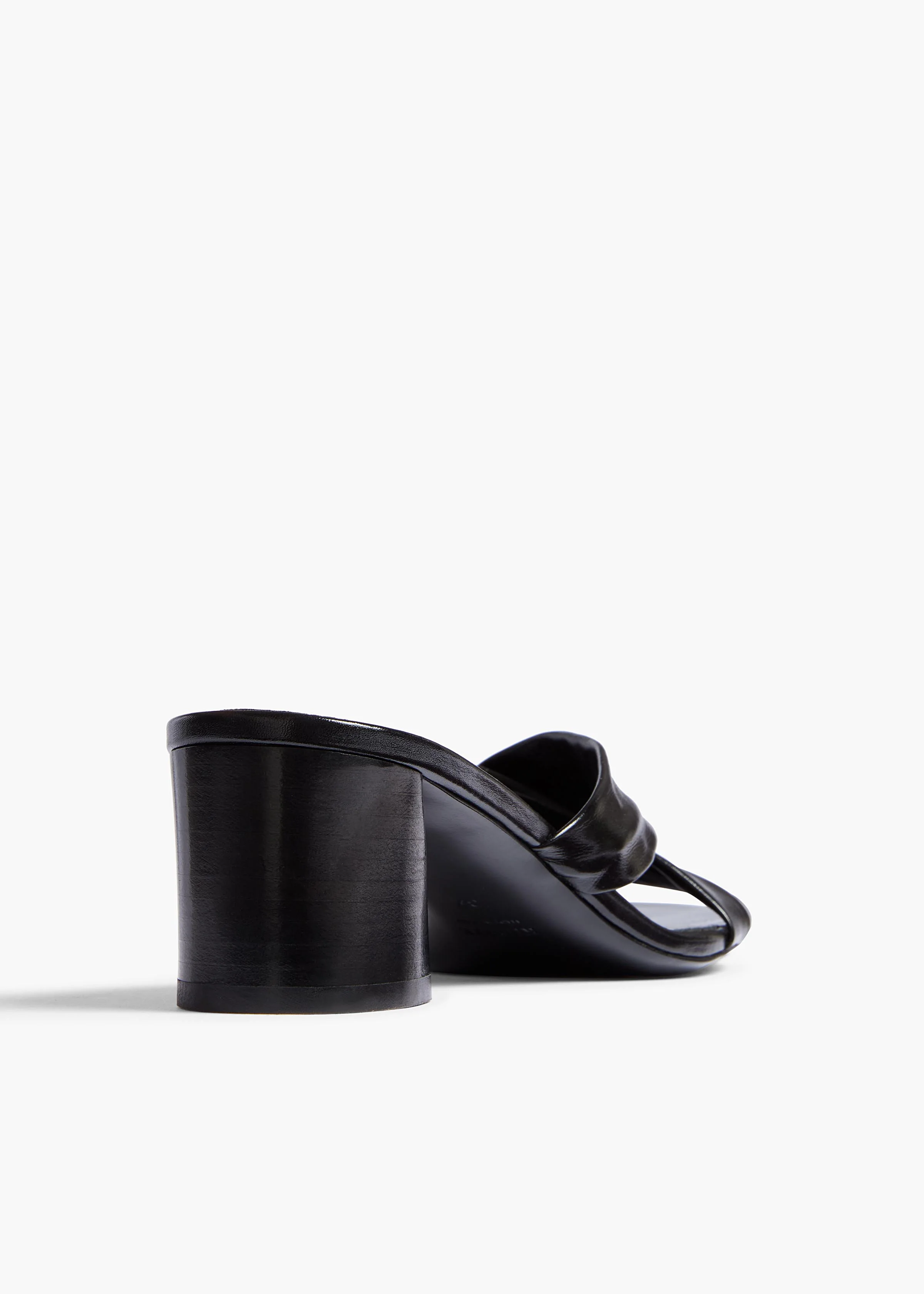 Spotlighting exquisite materials such as glossy Italian calfskin, this softened variation on a classic, block-heeled slide is defined by broad, cris-crossed straps designed to both hug the foot and drape over it.